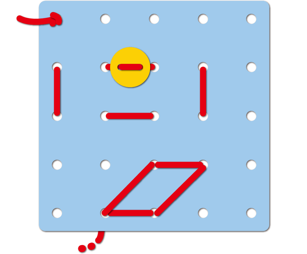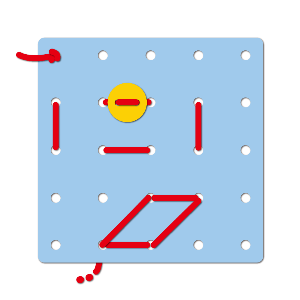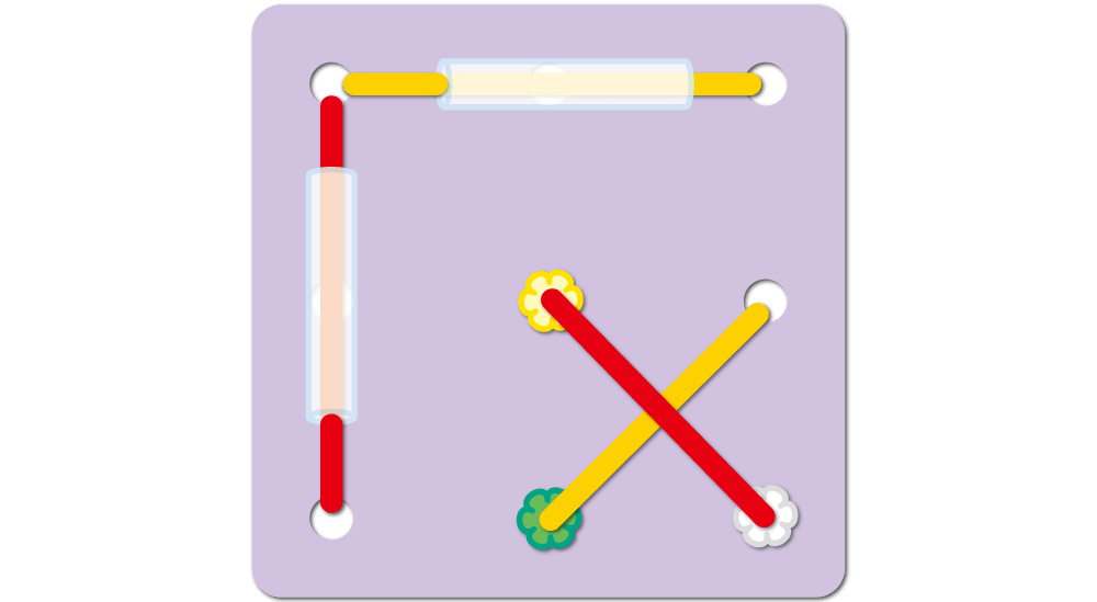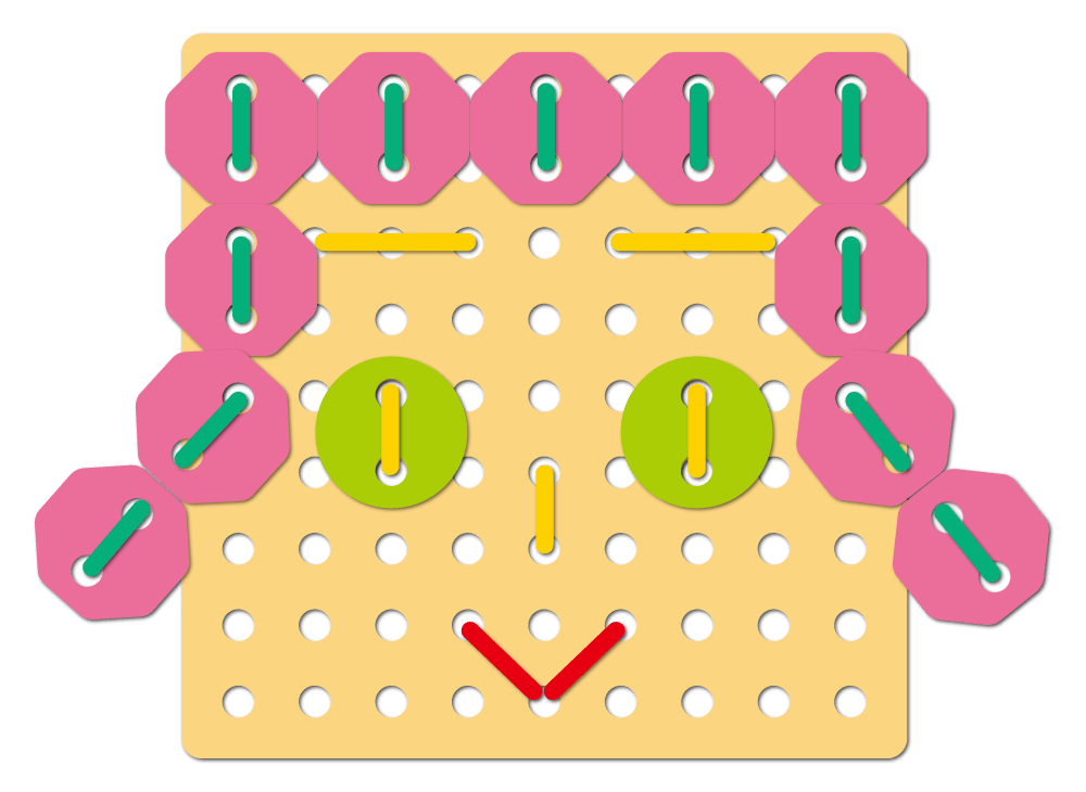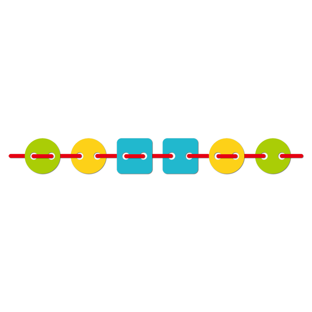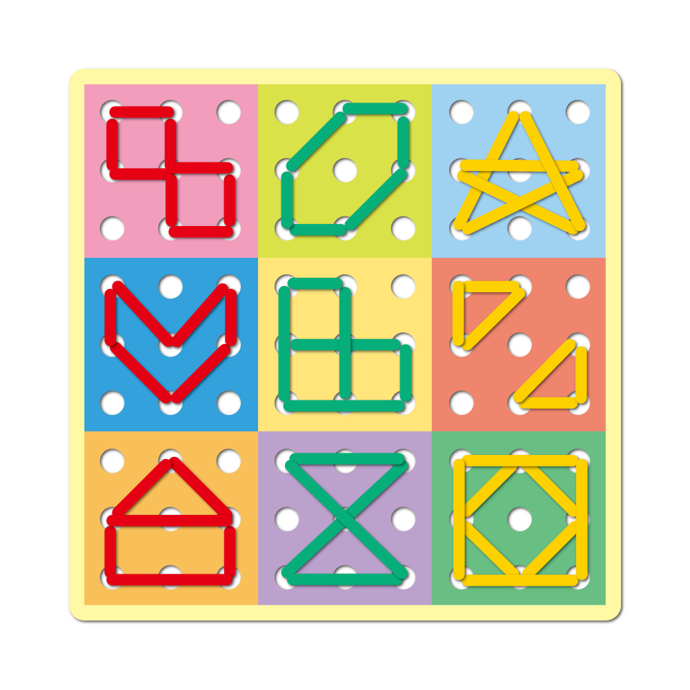 手先の巧緻性や創造力、仮説思考力や位置の認識力を育てることを目的とした教材です。3×3・5×5・9×9のひもとおし板が各2枚用意されているので、お家の方とお子さまが一緒に取り組むことができます。また、ひもとおし板の片面は入試対策に使用できる無地、もう片面は楽しい絵や模様がついています。紐やカラフルなパーツ類を組み合わせて、自分だけの楽しい作品を作りましょう。