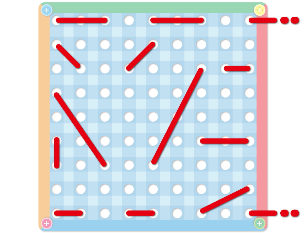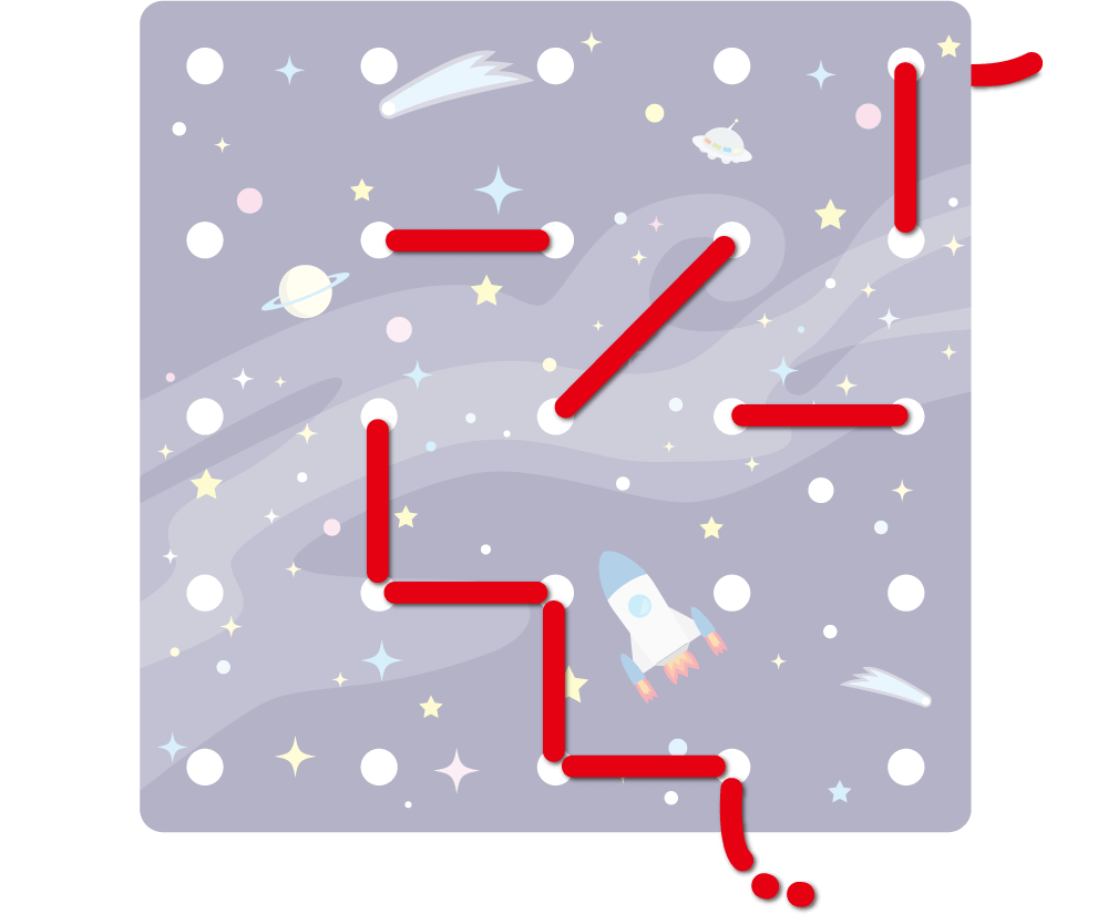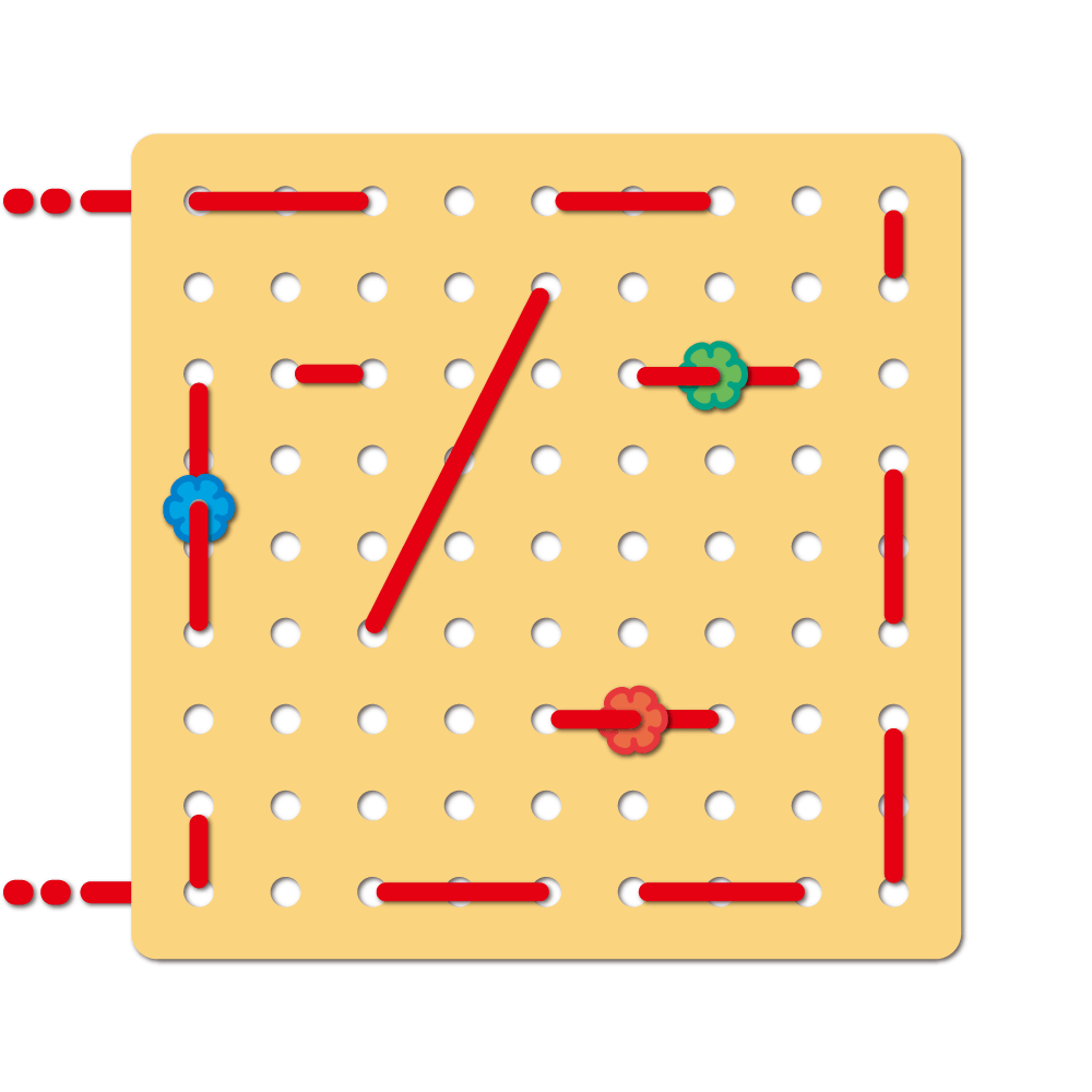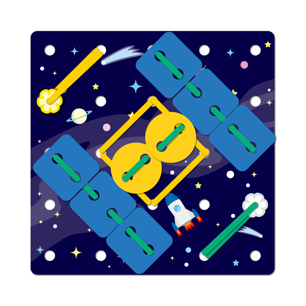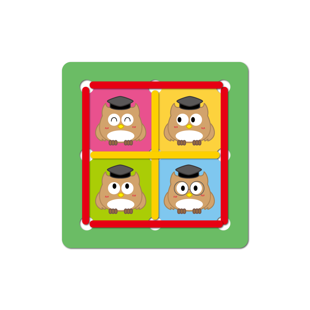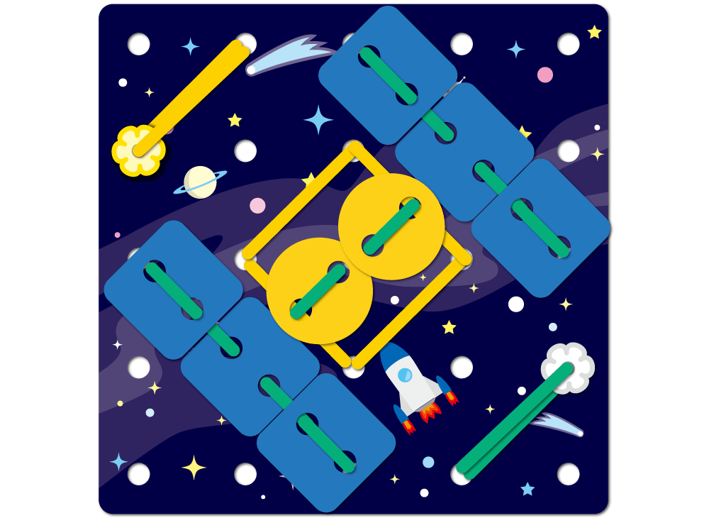 手先の巧緻性や創造力、仮説思考力や位置の認識力を育てることを目的とした教材です。3×3・5×5・9×9のひもとおし板が各2枚用意されているので、お家の方とお子さまが一緒に取り組むことができます。また、ひもとおし板の片面は入試対策に使用できる無地、もう片面は楽しい絵や模様がついています。紐やカラフルなパーツ類を組み合わせて、自分だけの楽しい作品を作りましょう。
