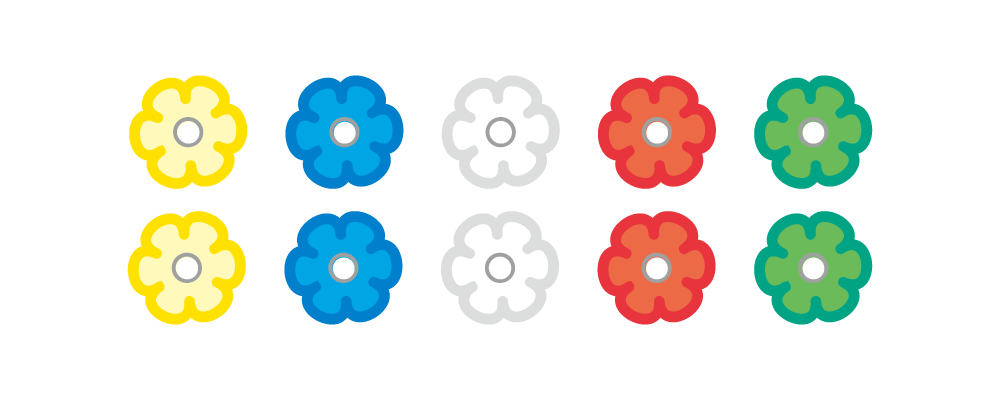 ・花はじき…10個(黄・青・白・赤・緑 各2個)